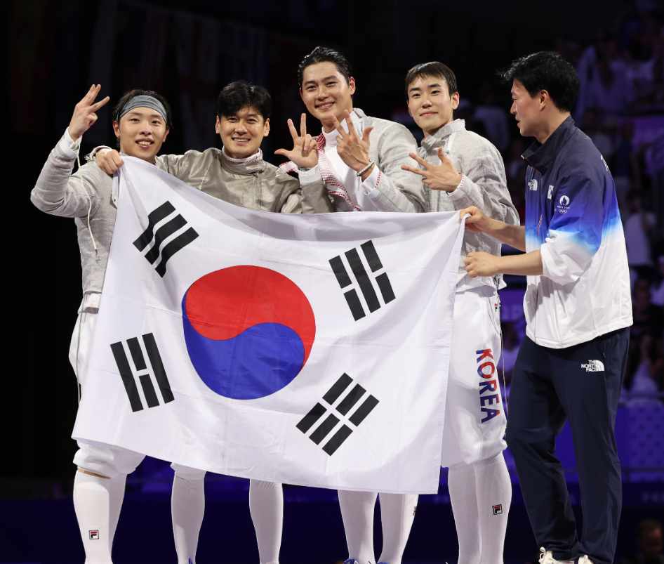 남자 사브르 단체 결승전에서 헝가리를 45:41로 누르고 금메달을 획득하며 대한민국 펜싱 대표팀은 아시아 최초 올림픽 3관왕을 차지하게 되었습니다.