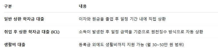 특히 ‘취업 후 상환제(ICL)’의 경우에는 소득이 있는 달부터 자동으로 원천징수되는 방식이에요.