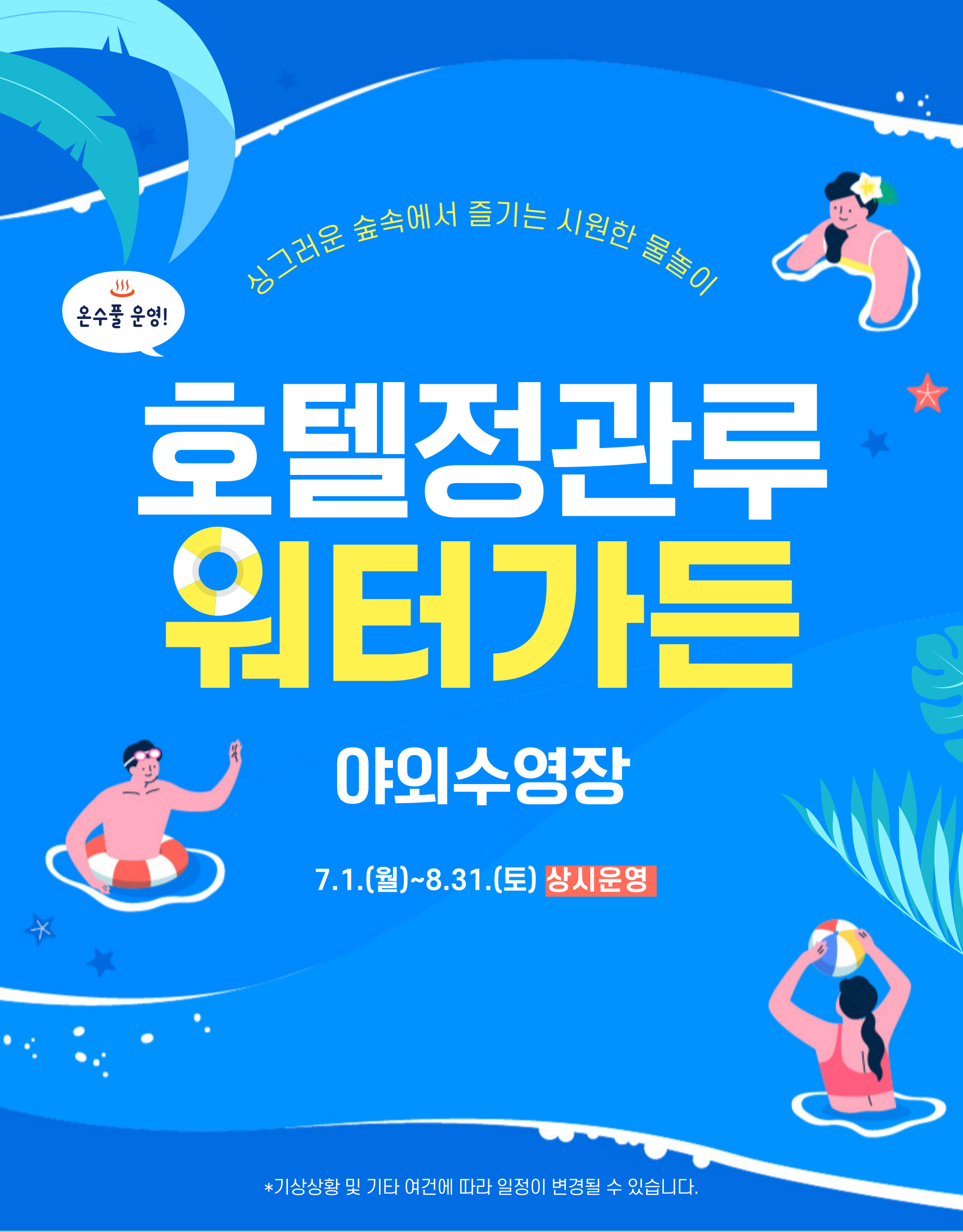 8월 31일까지 숲 속에서 즐기는 시원한 물놀이 워터가든도 운영하고 있으니 시원한 물놀이도 즐겨보시길 추천드립니다.