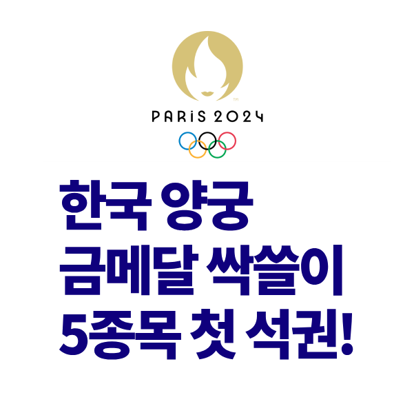 올림픽 시작될 때 금메달 5개를 바라보고 있었는데, 양궁에서만 금메달 5개를 따내며 목표를 조기달성한 대한민국 선수단! 아직 올림픽 기간이 남았고 시작하지 않은 경기들도 있으니 조금 더 딸 수 있지 않을까 기대하게 됩니다.