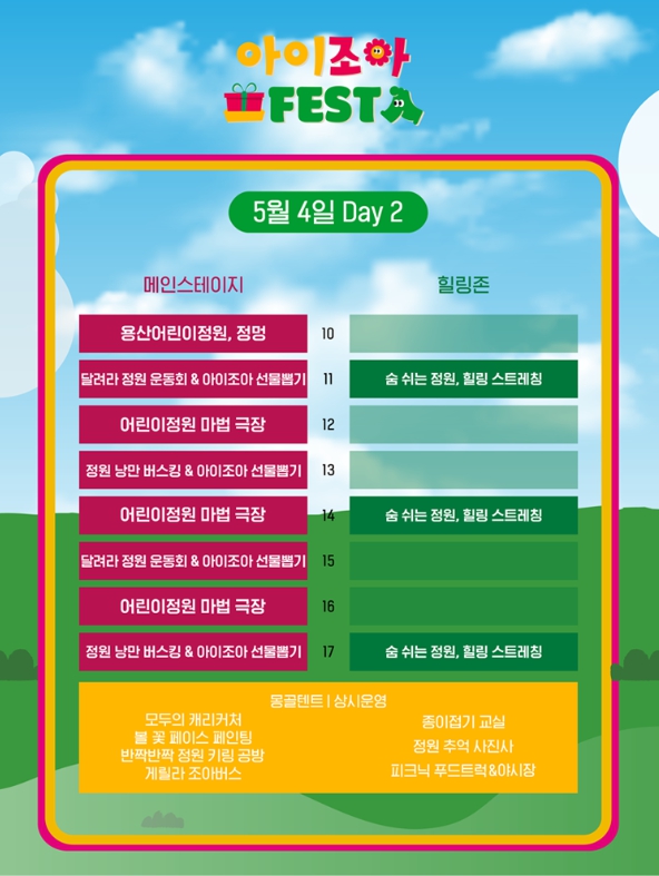 용산어린이정원 일대 전체에서 진행되는 행사인 만큼 볼거리, 즐길거리, 먹거리가 가득할 것 같아요.